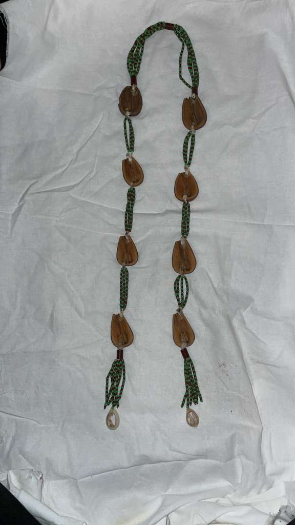 This handmade Opele Ifa divination chain is crafted from authentic opele seeds and strung with vibrant green and brown beads, making it a powerful and traditional tool for Ifa divination practice.